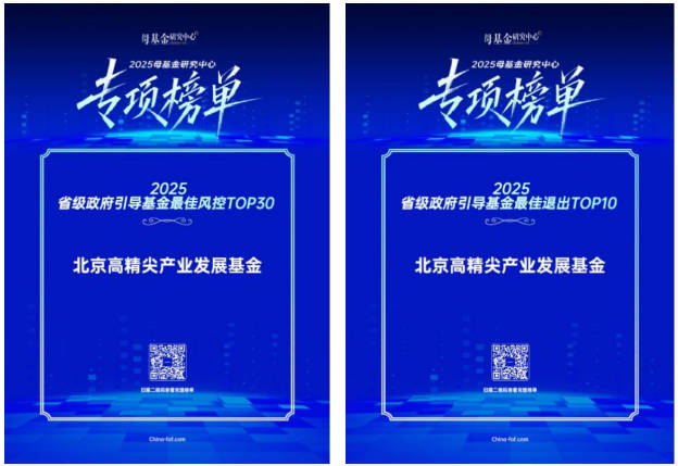 近日,母基金研究中心正式发布“2025年度专项榜单”。北京高精尖产业发展基金凭借稳健的风控体系和优异的退出业...